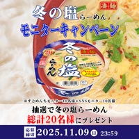 冬の恒例!記念すべき20作目の今年は、背脂たっぷり濃厚感! 「ニュータッチ 凄麺 冬の塩らーめん」 2025年11月10日(月)新発売 |