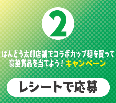 ②:「ばんどう太郎店舗でコラボカップ麺を買って豪華賞品を当てよう!キャンペーン」