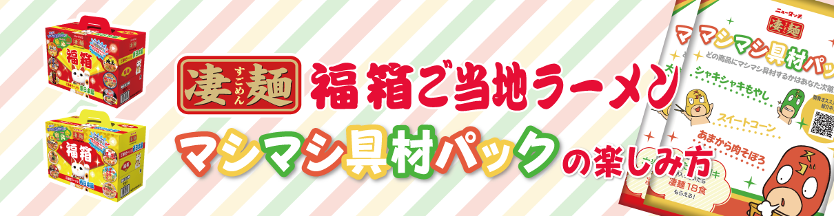 2025年12月1日数量限定発売となる「凄麺 福箱 ご当地ラーメン 東日本編/西日本編」にもれなくついている「マシマシ具材パック」。